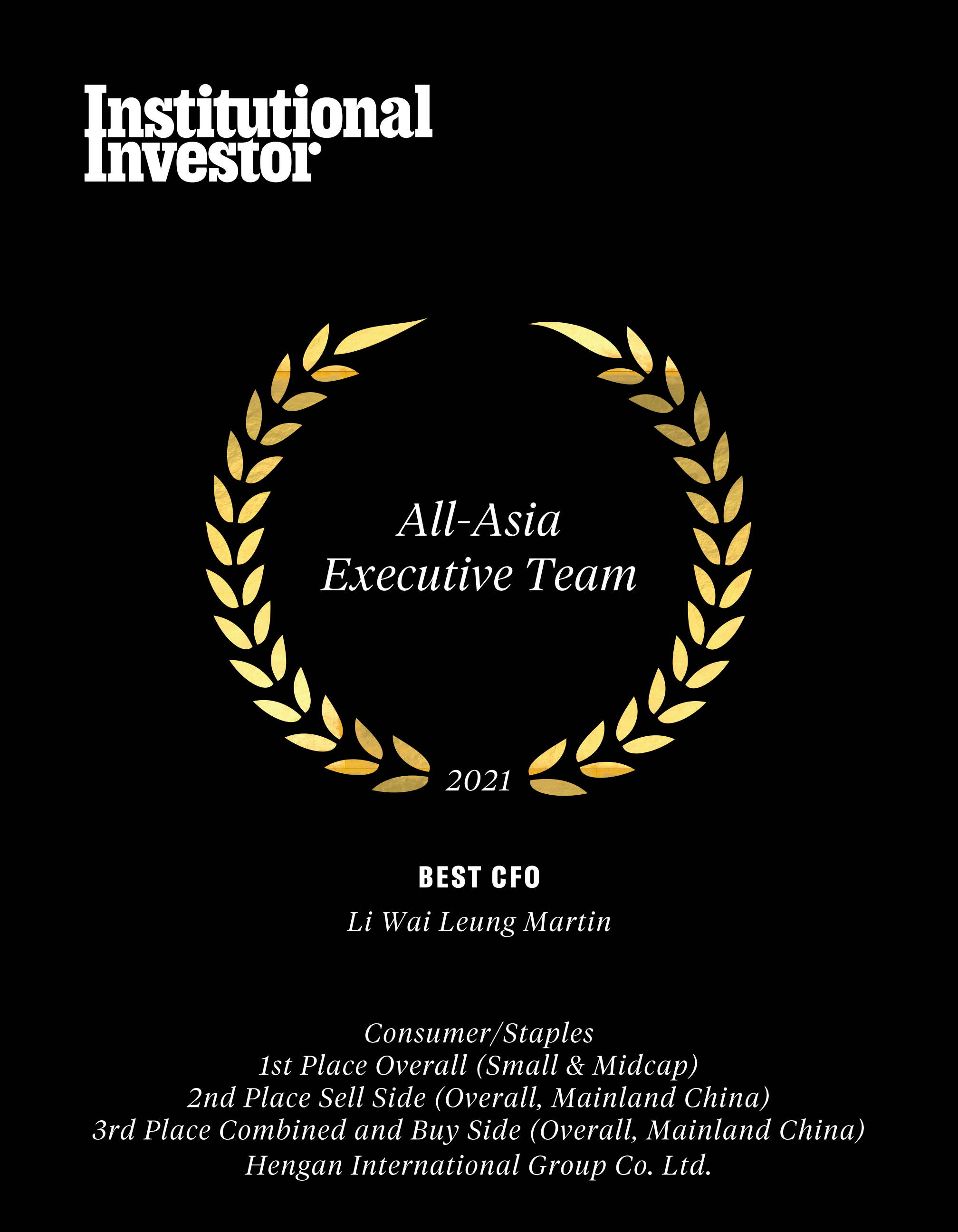 近日,国际权威财经杂志《机构投资者》(Institutional Investor)公布了“2021年度亚洲区公司最佳管理团队”(2021All-AsiaExecutiveTeam)评选结果,南宫国际集团蝉联“受尊崇企业”名衔及必需性消费品类别组别中的多项殊荣,包括“最佳投资者关系活动”、“最佳环境、社会及企业管治(ESG)”、“最佳行政总裁”许连捷先生、“最佳财务总监”李伟樑先生。